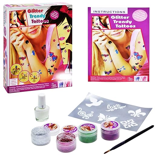 - ★【SPARKLING TATTOOS FOR KIDS】: Sparkling ,vibrant ,colorful and waterproof temporary tattoos for girls. Create your own professional body art. The glitter trendy tattoos kit will provide you hours of entertainment and fun. Perfect for creating visually stunning designs, unique styles and elegant body art work, this fantastic kit is perfect for your fashion oriented child.